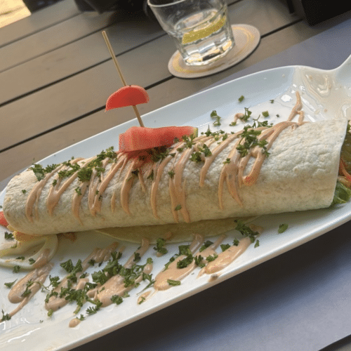 Wrap scampi met huisgemaakte knoflooksaus